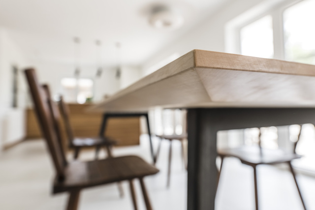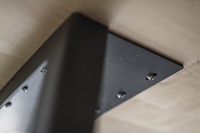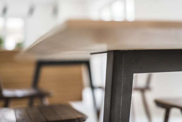 Eine Massivholzplatte, die viel aushält. Zwei aus Stahl gefaltete Beine, die all das im 11 Grad Winkel tragen. So stabil wie früher. Mindestens. Und so zeitlos, wie’s dem Zeitgeist entspricht. Auch in Zukunft.