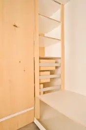 Ein Schrank als schlichte Kiste sagt der erste Blick.