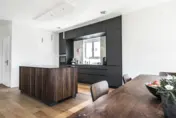 So praktisch wie harmonisch. Denn genau das muss ein zentraler Treffpunkt sein. Ohne Ecken und Kanten, damit Kinderköpfe keine Blessuren davontragen – und Erwachsene komfortabel kochen, ratschen und einfach „zusammen sein“ können.